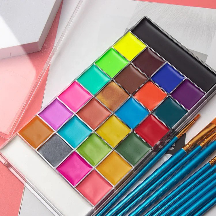 Cream based highly pigmented 26 colours facepaint. Comes with stickers and brush sets.